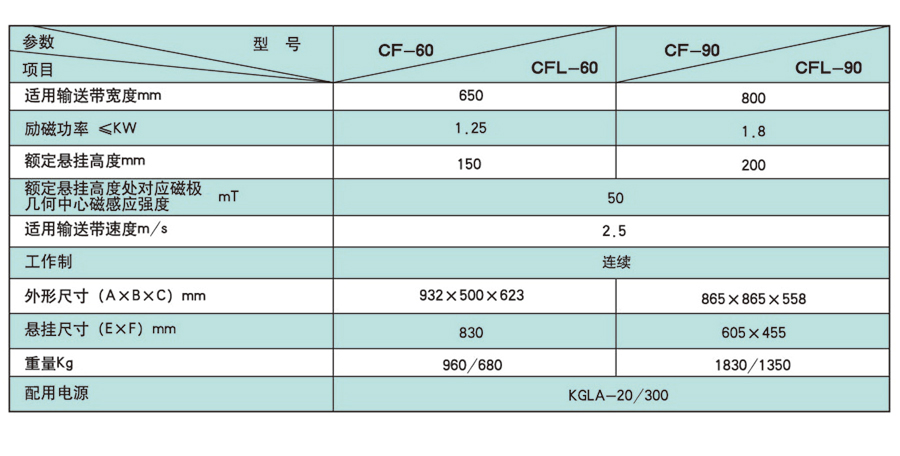 CF、CFL系列懸掛式電磁除鐵器與帶式輸送機配套使用,主要用于除去混雜在非磁性散狀物料中重量為0.1-25公斤的鐵磁性物質(zhì),適用冶金、礦山、電力、造紙、制糖、化工、建材等行業(yè)。