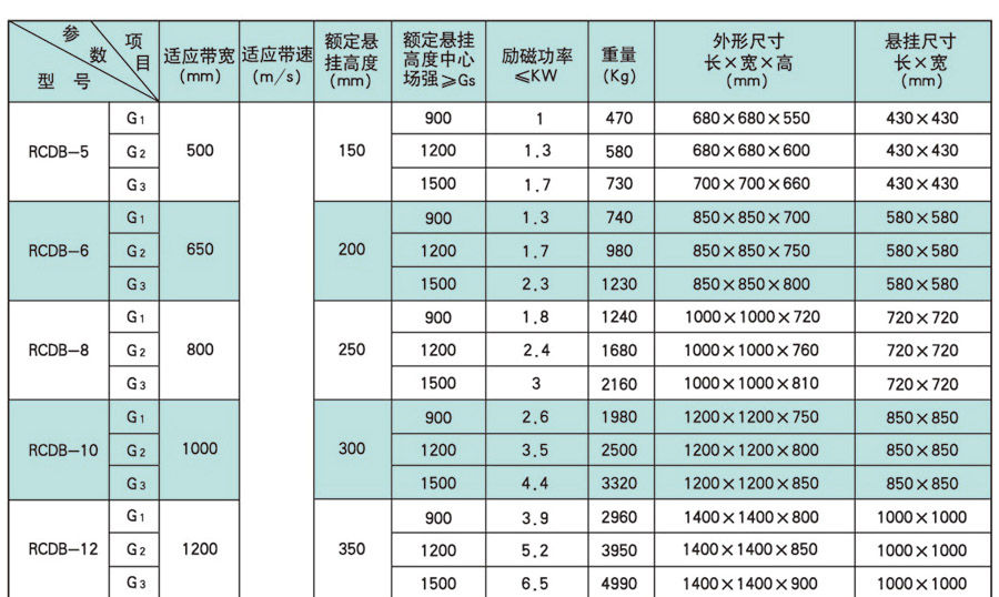 RCDB-□G系列高強(qiáng)磁懸掛式電磁除鐵器